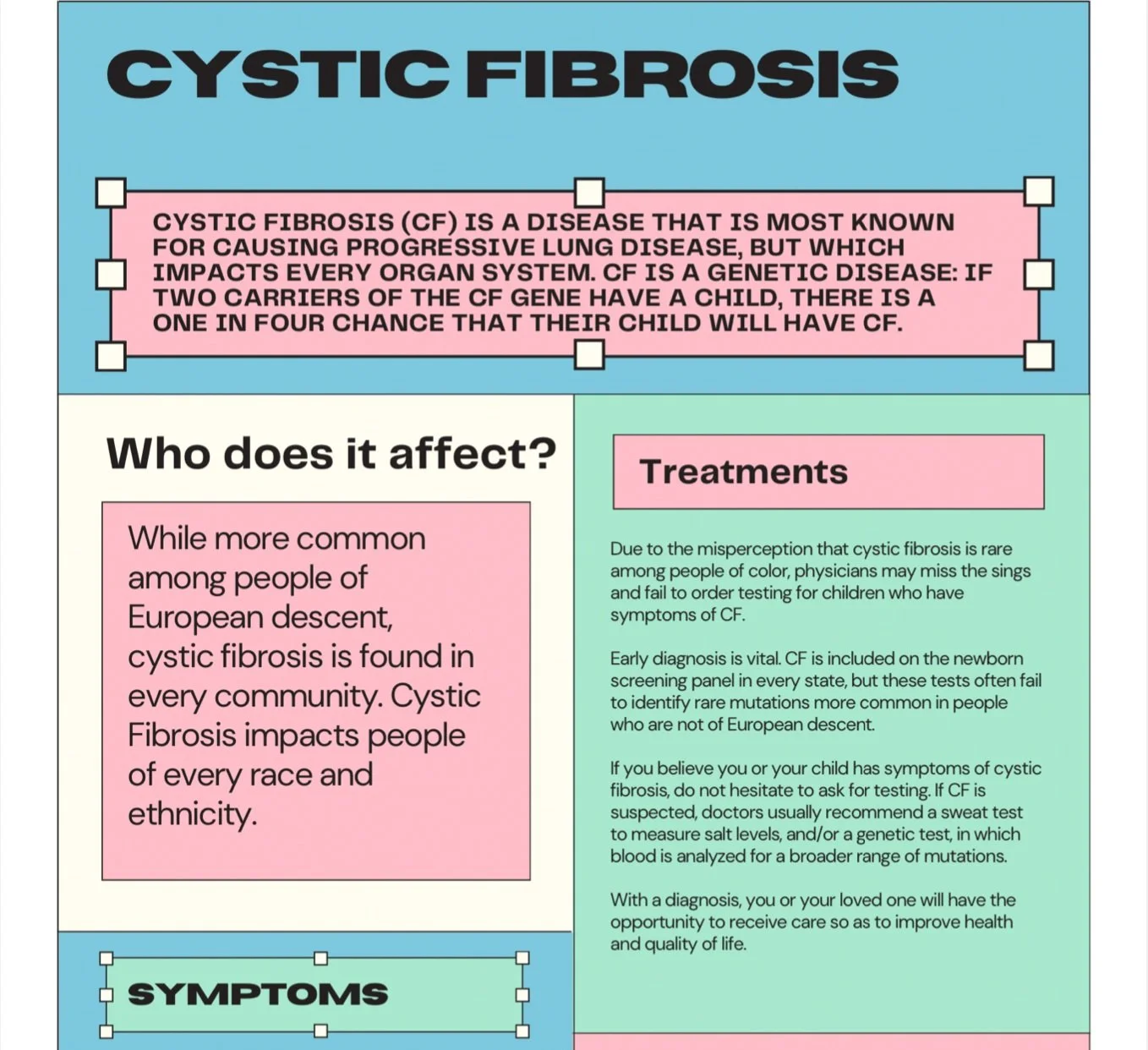 Alongside social media campaigns, volunteers at Nysha are work on flyers that emphasize how cystic fibrosis impacts people of every race and ethnicity.